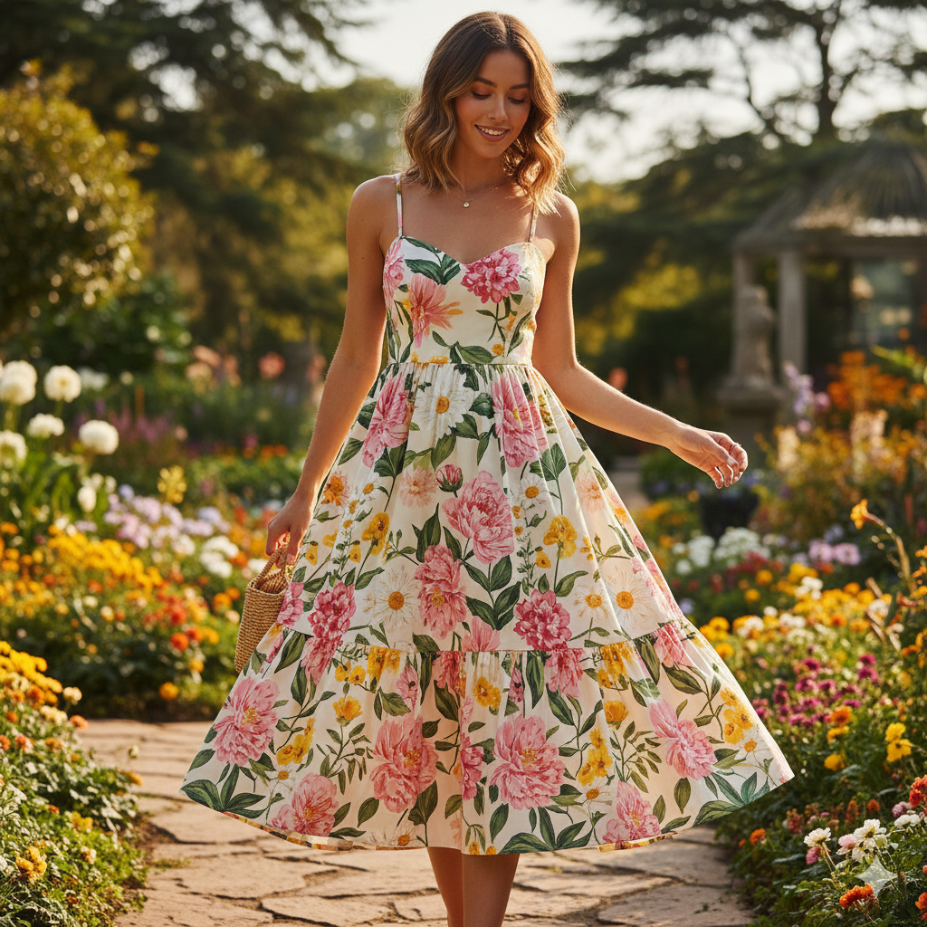 เดรสสั้นในผ้าฝ้ายโปร่งเบาสบาย ดีไซน์เข้ารูปช่วงตัวพร้อมคอวีแบบ sweetheart สายไหล่แคบ และดีเทลการเย็บ smocking กว้างด้านหลัง เข้าชายด้วยตะเข็บจับจีบที่เอว พร้อมยางยืดที่ด้านหลัง และกระโปรงบาน ไม่บุผ้าซับใน