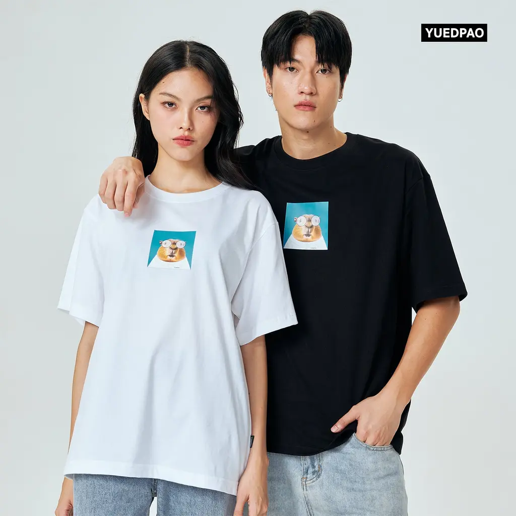 เนื้อผ้าพิเศษอันเป็นเอกลักษณ์แบรนด์ Yuedpao พรีเมี่ยม ผ้าหนา 200 gsm อยู่ทรงสวย ไม่ย้วยยับยาก เส้นด้ายดีที่สุด ละเอียดสุด สกรีนด้วยเทคนิค Digital printing เนียน คมชัด ป้ายคอสกรีน ไม่ระคายเคือง
